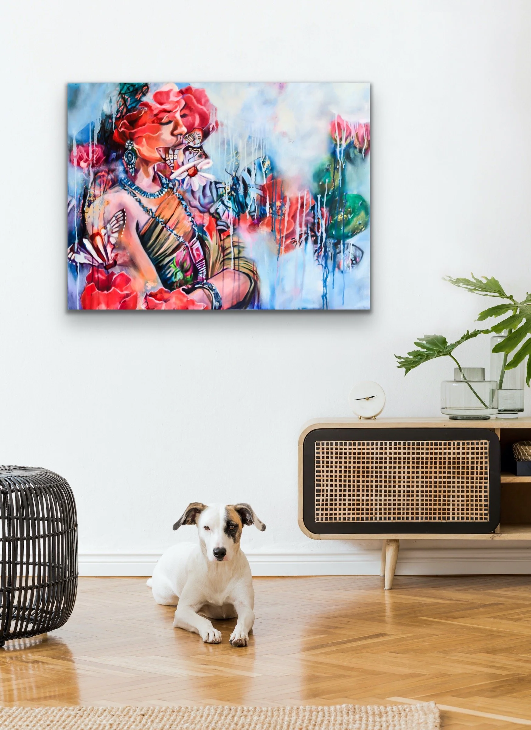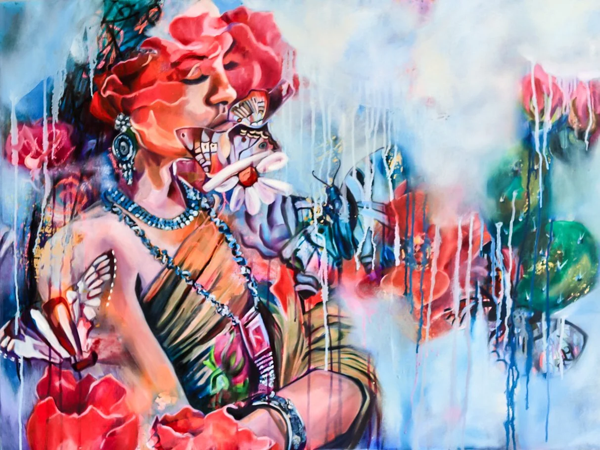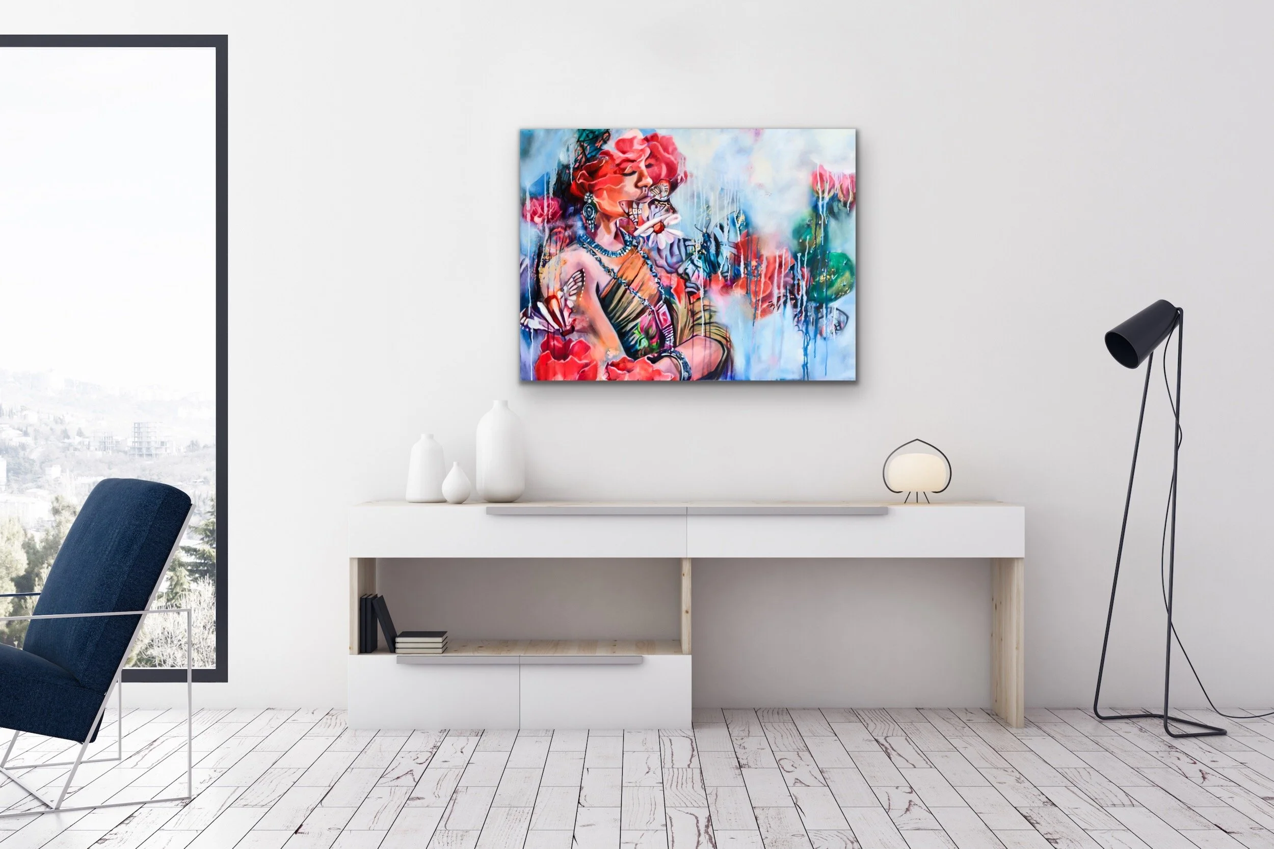 Euphoria is inspired by flowers. I feel the flower is the real definition of beauty. I tried to capture the essence of a flower forever in this painting. I love to keep vases full of flowers in my studio and take inspiration from them.