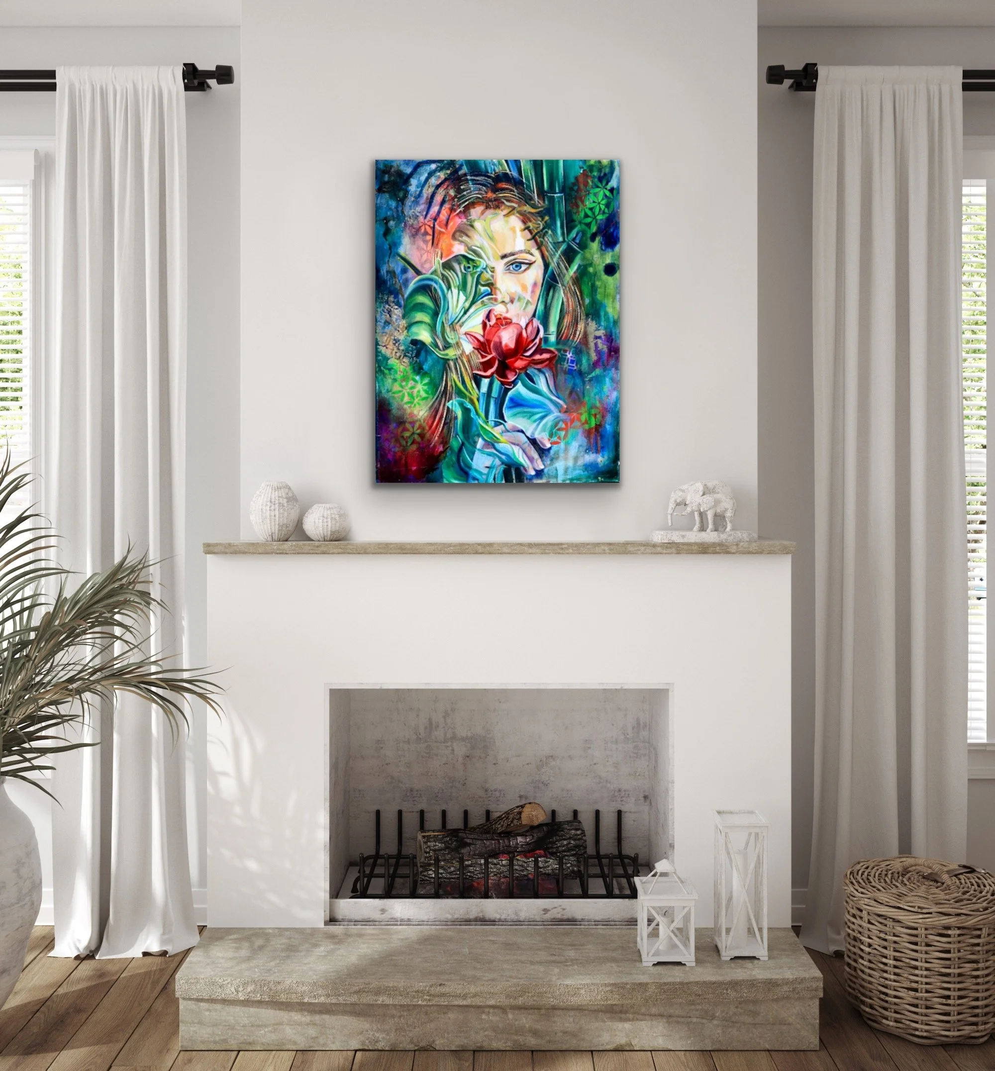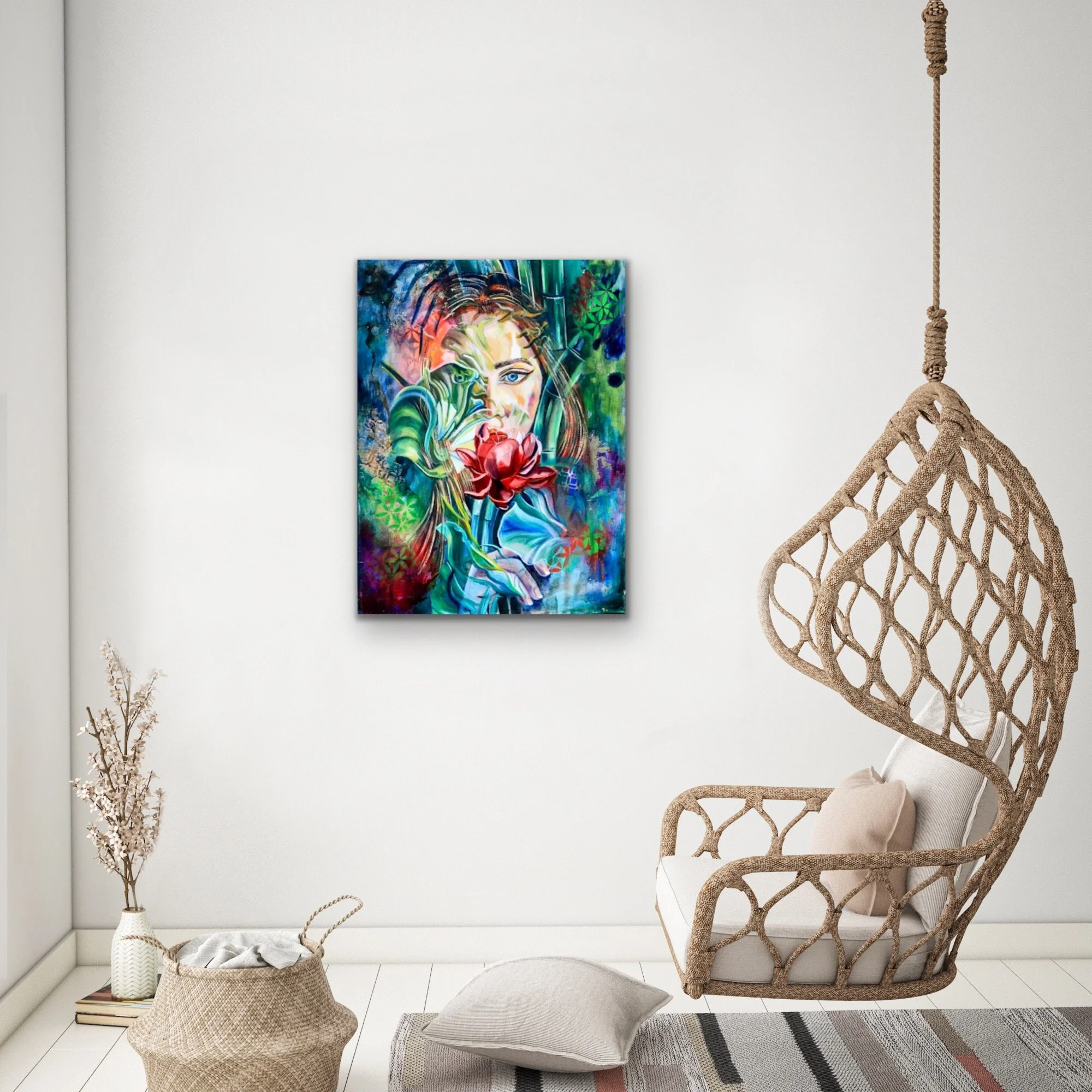 To see newness, you have to feel new. This painting radiates the originality that colors tropical lands. The plants and flowers and bend of the bamboo tell a story of coexisting magnificence. Tropical lands would get you in your feelings when you admire such lush greenery's intricacy and beauty.