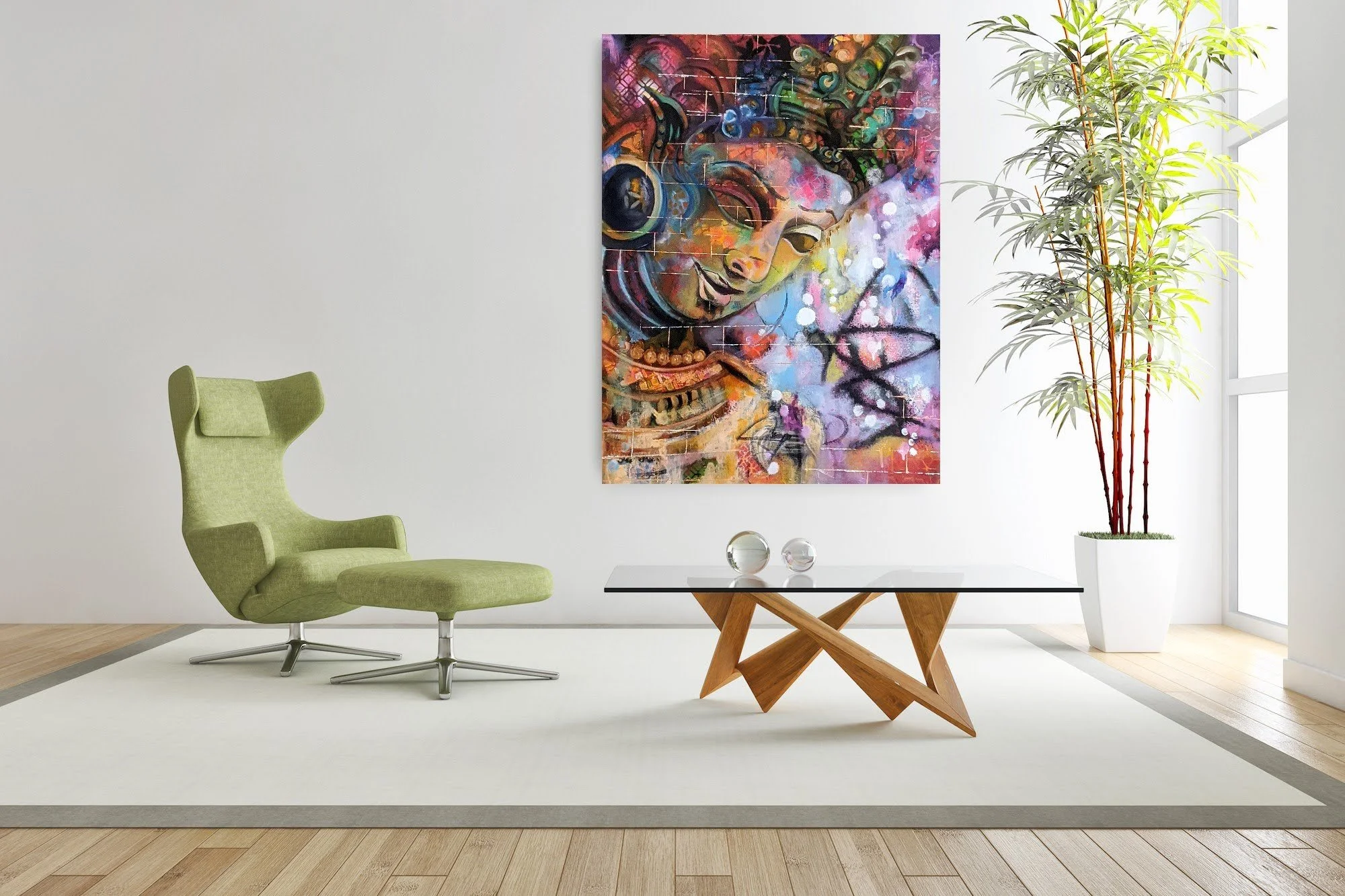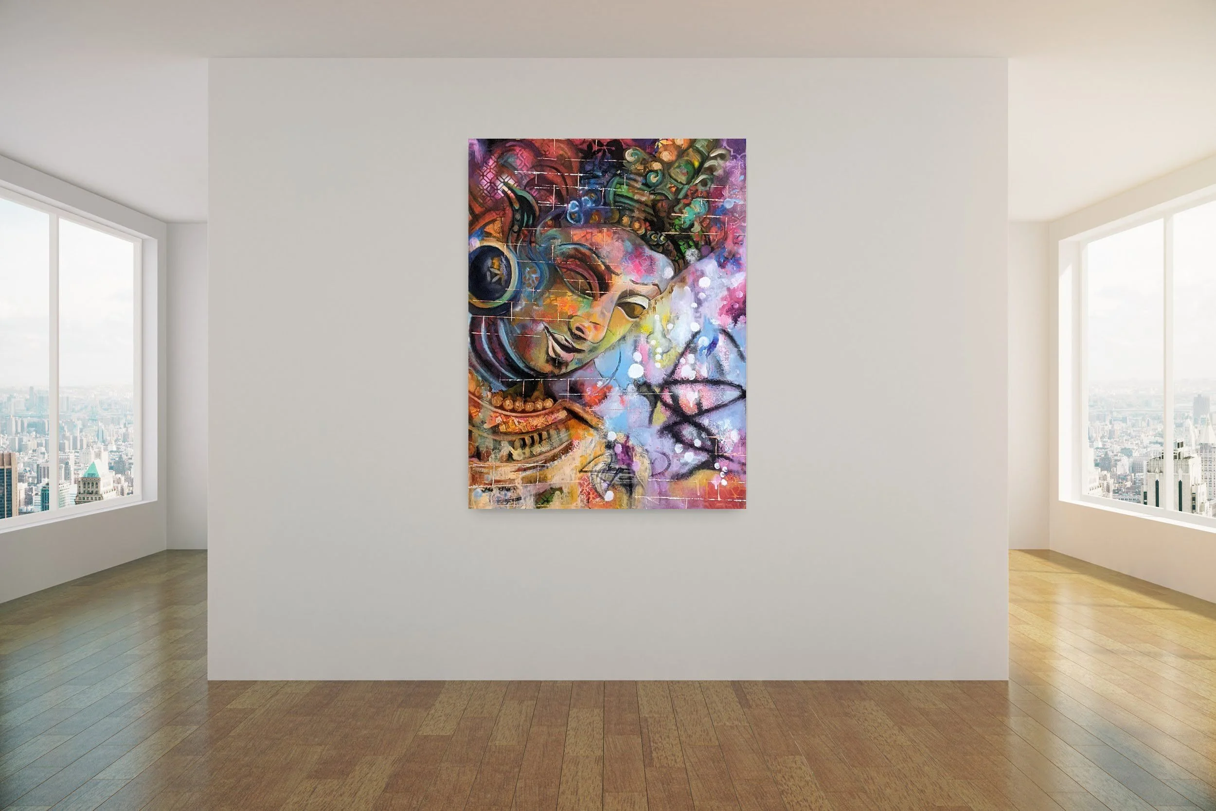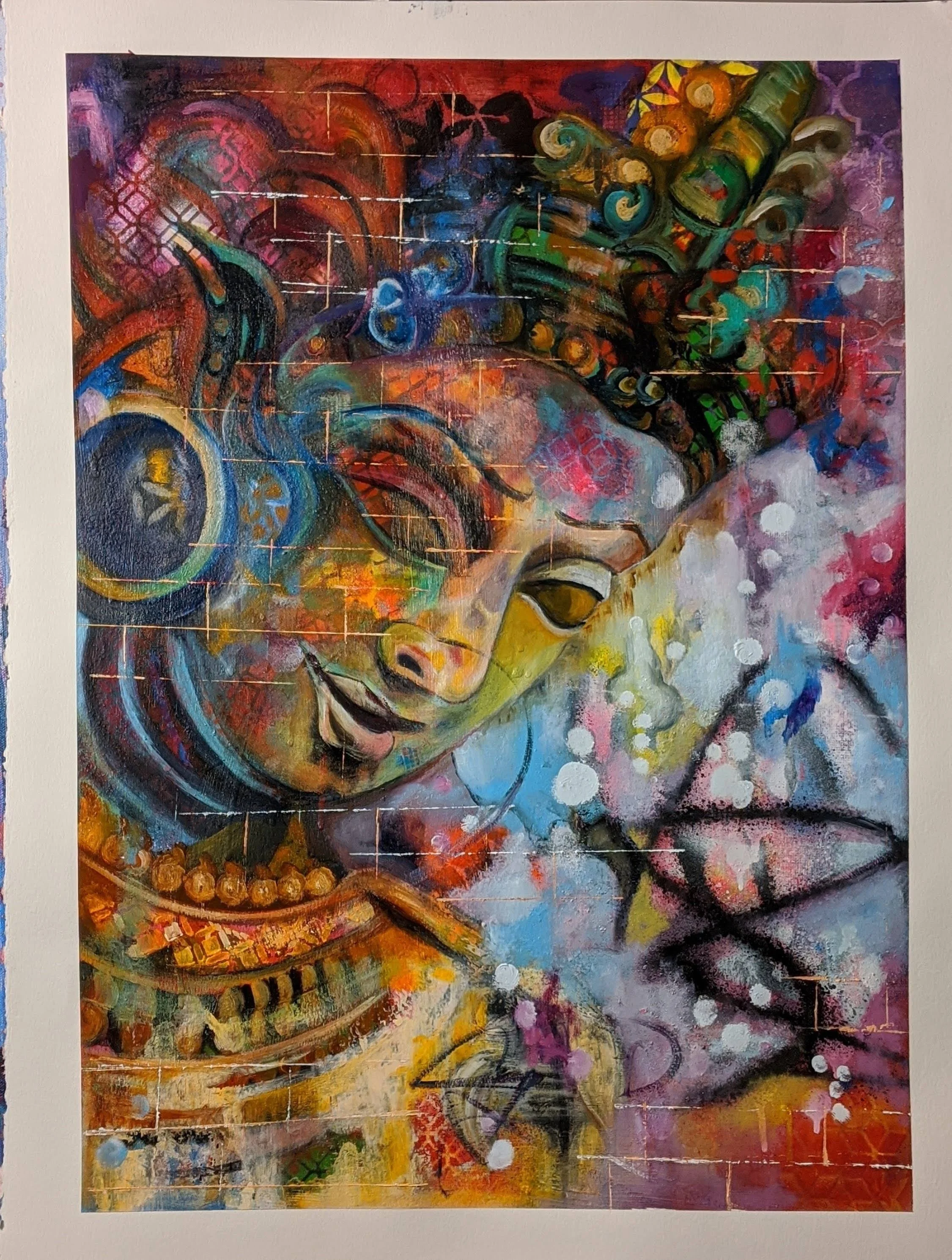 I portrayed her in my own style using spray paints, markers, acrylic and oil paint.